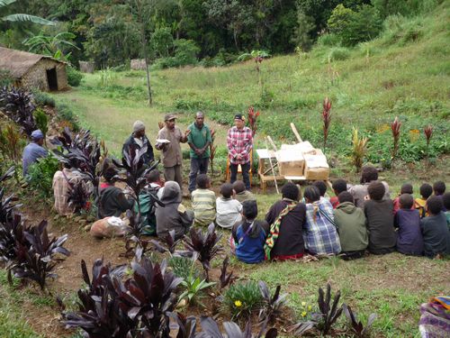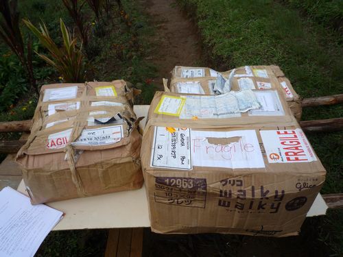 | 9:00 セレモニー開会 結局、始まったのは9時でした。おおらかなものです。 遅くなると帰りのバスがあるか心配でしたが、バスはたくさんあるので大丈夫。とドナルドは言っているので、とりあえず一安心。 ドナルド、学校のチェアマン、村人代表の挨拶があり、続いて挨拶をさせてもらいました。 自己紹介、三浦さんが昆虫観察で村に来たこと、プレゼントが2回目であり前回は田中さんが来たこと、日本でパイガタサ村を応援する人たちがいて、プレゼントを一生懸命集めてくれたことを話しました。 |